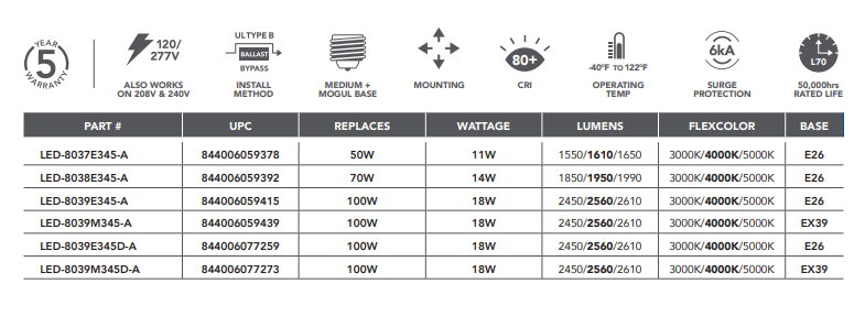 Easy Installation: Compatible with most bollard and post-top fixtures, ensuring a hassle-free upgrade to LED technology.