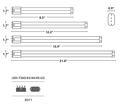 Light Efficient Design LED PL Retrofit Lamps (Models LED-7340, LED-7343, LED-7344, LED-7345) are the ultimate solution for upgrading outdated CFL bulbs to energy-efficient LED technology. These lamps are designed for direct line voltage operation (Type B), eliminating the need for ballasts and simplifying installation. With selectable color temperatures ranging from 3000K to 6500K, these lamps offer customizable lighting to suit any space. Their durable construction ensures reliable performance in enclosed fixtures and damp locations, making them ideal for residential, commercial, and industrial applications. Rated for up to 50,000 hours, these lamps reduce maintenance costs while delivering consistent, high-quality illumination.